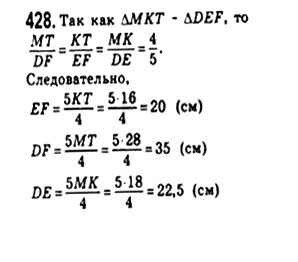 Готовая домашняя работа с ответами по Геометрии за 8 класс Мерзляк, Полонский, Якир Учебник Алгоритм успеха Вентана-граф 2015 ФГОС - § 12. Подобные треугольники. Лемма о подобных треугольниках 428