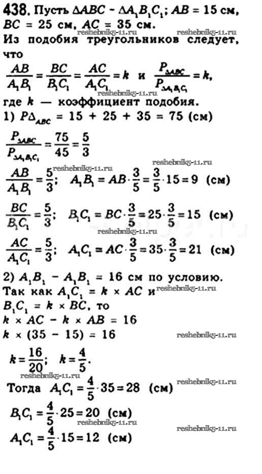 Готовая домашняя работа с ответами по Геометрии за 8 класс Мерзляк, Полонский, Якир Учебник Алгоритм успеха Вентана-граф 2015 ФГОС - § 12. Подобные треугольники. Лемма о подобных треугольниках 438