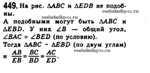 Готовая домашняя работа с ответами по Геометрии за 8 класс Мерзляк, Полонский, Якир Учебник Алгоритм успеха Вентана-граф 2015 ФГОС - § 13. Первый признак подобия треугольника. Свойство пересекающихся хорд. Свойство касательной и секущей. Теорема Менелая. Теорема Птолемея. 449