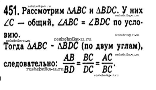 Готовая домашняя работа с ответами по Геометрии за 8 класс Мерзляк, Полонский, Якир Учебник Алгоритм успеха Вентана-граф 2015 ФГОС - § 13. Первый признак подобия треугольника. Свойство пересекающихся хорд. Свойство касательной и секущей. Теорема Менелая. Теорема Птолемея. 451