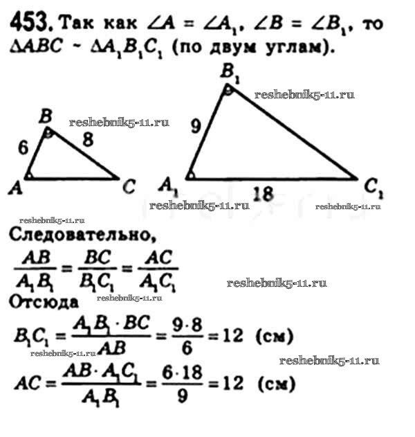 Готовая домашняя работа с ответами по Геометрии за 8 класс Мерзляк, Полонский, Якир Учебник Алгоритм успеха Вентана-граф 2015 ФГОС - § 13. Первый признак подобия треугольника. Свойство пересекающихся хорд. Свойство касательной и секущей. Теорема Менелая. Теорема Птолемея. 453