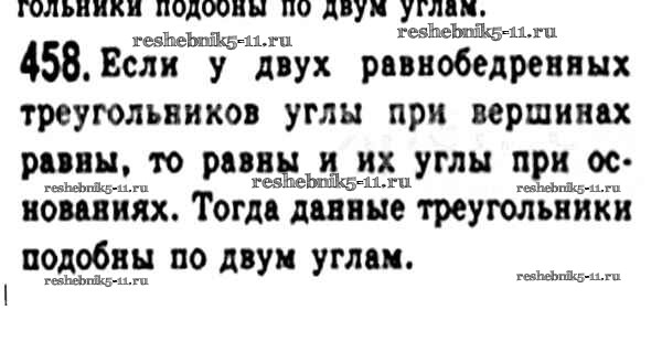 Готовая домашняя работа с ответами по Геометрии за 8 класс Мерзляк, Полонский, Якир Учебник Алгоритм успеха Вентана-граф 2015 ФГОС - § 13. Первый признак подобия треугольника. Свойство пересекающихся хорд. Свойство касательной и секущей. Теорема Менелая. Теорема Птолемея. 458