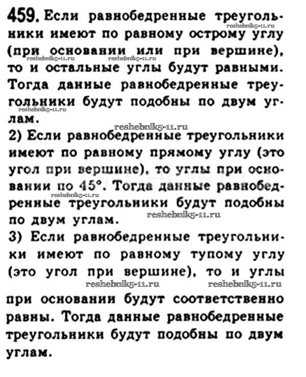 Готовая домашняя работа с ответами по Геометрии за 8 класс Мерзляк, Полонский, Якир Учебник Алгоритм успеха Вентана-граф 2015 ФГОС - § 13. Первый признак подобия треугольника. Свойство пересекающихся хорд. Свойство касательной и секущей. Теорема Менелая. Теорема Птолемея. 459