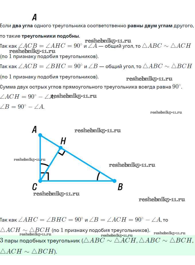 § 15. Метрические соотношения в прямоугольном треугольнике
