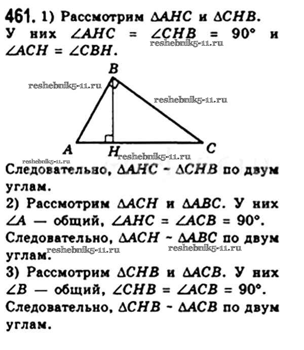 Готовая домашняя работа с ответами по Геометрии за 8 класс Мерзляк, Полонский, Якир Учебник Алгоритм успеха Вентана-граф 2015 ФГОС - § 13. Первый признак подобия треугольника. Свойство пересекающихся хорд. Свойство касательной и секущей. Теорема Менелая. Теорема Птолемея. 461