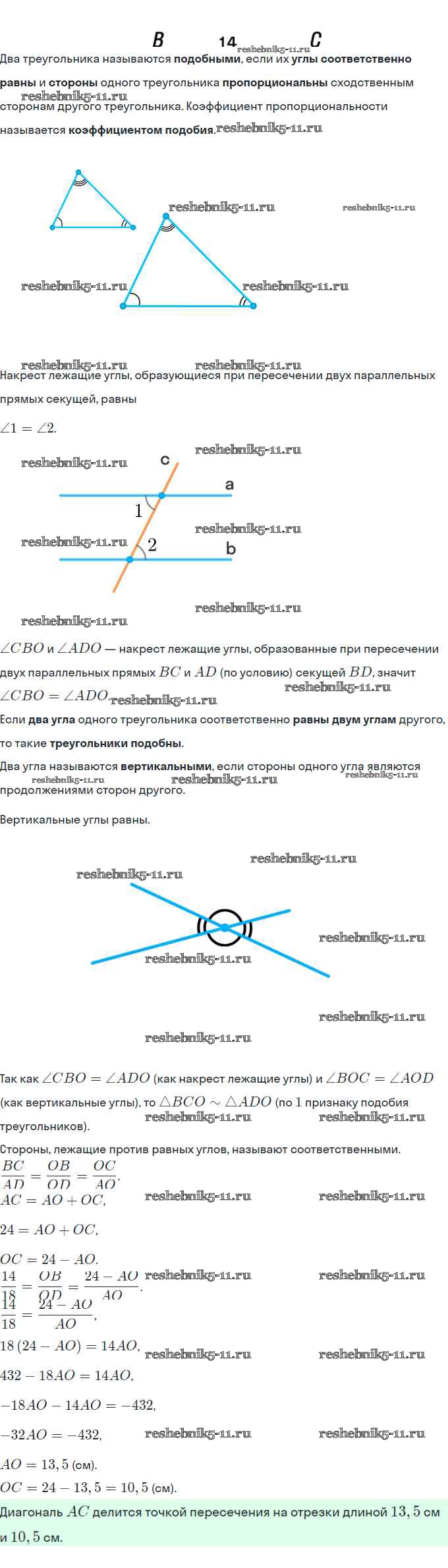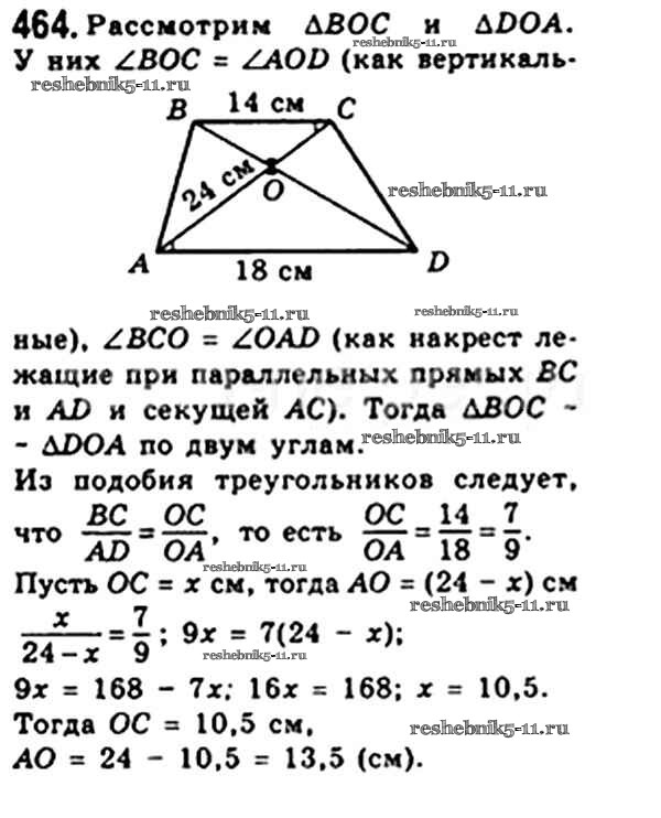 Готовая домашняя работа с ответами по Геометрии за 8 класс Мерзляк, Полонский, Якир Учебник Алгоритм успеха Вентана-граф 2015 ФГОС - § 13. Первый признак подобия треугольника. Свойство пересекающихся хорд. Свойство касательной и секущей. Теорема Менелая. Теорема Птолемея. 464