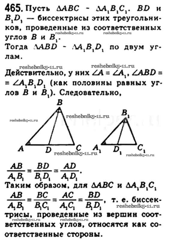 Готовая домашняя работа с ответами по Геометрии за 8 класс Мерзляк, Полонский, Якир Учебник Алгоритм успеха Вентана-граф 2015 ФГОС - § 13. Первый признак подобия треугольника. Свойство пересекающихся хорд. Свойство касательной и секущей. Теорема Менелая. Теорема Птолемея. 465