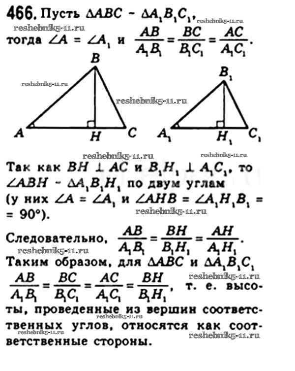 Готовая домашняя работа с ответами по Геометрии за 8 класс Мерзляк, Полонский, Якир Учебник Алгоритм успеха Вентана-граф 2015 ФГОС - § 13. Первый признак подобия треугольника. Свойство пересекающихся хорд. Свойство касательной и секущей. Теорема Менелая. Теорема Птолемея. 466