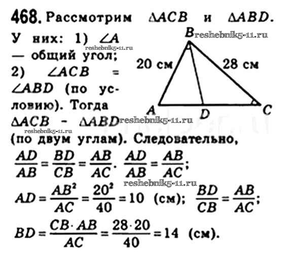 Готовая домашняя работа с ответами по Геометрии за 8 класс Мерзляк, Полонский, Якир Учебник Алгоритм успеха Вентана-граф 2015 ФГОС - § 13. Первый признак подобия треугольника. Свойство пересекающихся хорд. Свойство касательной и секущей. Теорема Менелая. Теорема Птолемея. 468