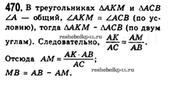 Готовая домашняя работа с ответами по Геометрии за 8 класс Мерзляк, Полонский, Якир Учебник Алгоритм успеха Вентана-граф 2015 ФГОС - § 13. Первый признак подобия треугольника. Свойство пересекающихся хорд. Свойство касательной и секущей. Теорема Менелая. Теорема Птолемея. 470