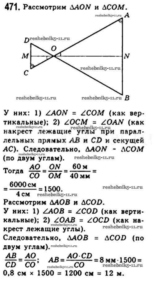 Готовая домашняя работа с ответами по Геометрии за 8 класс Мерзляк, Полонский, Якир Учебник Алгоритм успеха Вентана-граф 2015 ФГОС - § 13. Первый признак подобия треугольника. Свойство пересекающихся хорд. Свойство касательной и секущей. Теорема Менелая. Теорема Птолемея. 471