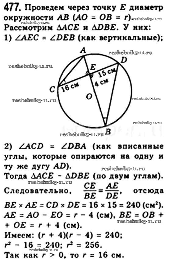 Готовая домашняя работа с ответами по Геометрии за 8 класс Мерзляк, Полонский, Якир Учебник Алгоритм успеха Вентана-граф 2015 ФГОС - § 13. Первый признак подобия треугольника. Свойство пересекающихся хорд. Свойство касательной и секущей. Теорема Менелая. Теорема Птолемея. 477