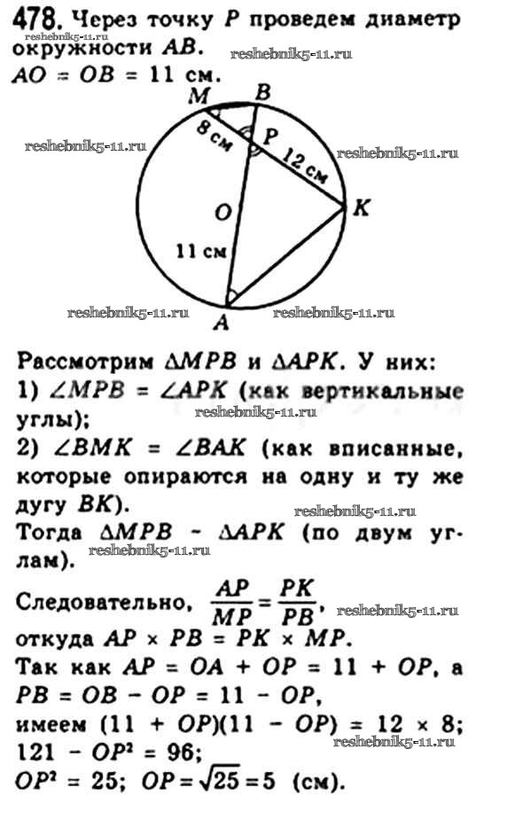 Готовая домашняя работа с ответами по Геометрии за 8 класс Мерзляк, Полонский, Якир Учебник Алгоритм успеха Вентана-граф 2015 ФГОС - § 13. Первый признак подобия треугольника. Свойство пересекающихся хорд. Свойство касательной и секущей. Теорема Менелая. Теорема Птолемея. 478