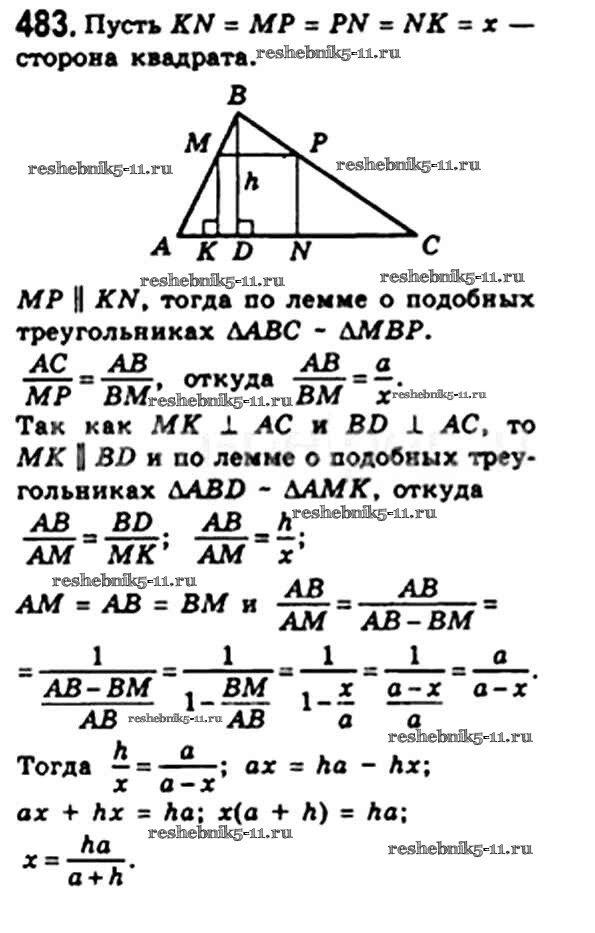 Готовая домашняя работа с ответами по Геометрии за 8 класс Мерзляк, Полонский, Якир Учебник Алгоритм успеха Вентана-граф 2015 ФГОС - § 13. Первый признак подобия треугольника. Свойство пересекающихся хорд. Свойство касательной и секущей. Теорема Менелая. Теорема Птолемея. 483