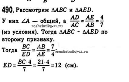 Готовая домашняя работа с ответами по Геометрии за 8 класс Мерзляк, Полонский, Якир Учебник Алгоритм успеха Вентана-граф 2015 ФГОС - § 14. Второй и третий признак подобия треугольника 490