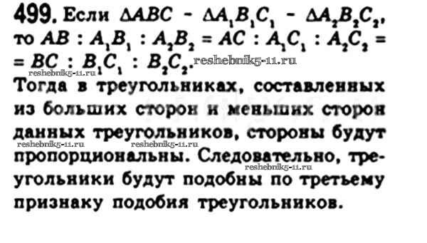 Готовая домашняя работа с ответами по Геометрии за 8 класс Мерзляк, Полонский, Якир Учебник Алгоритм успеха Вентана-граф 2015 ФГОС - § 14. Второй и третий признак подобия треугольника 499