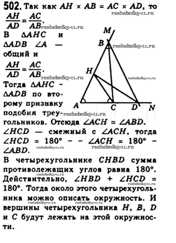 Готовая домашняя работа с ответами по Геометрии за 8 класс Мерзляк, Полонский, Якир Учебник Алгоритм успеха Вентана-граф 2015 ФГОС - § 14. Второй и третий признак подобия треугольника 502