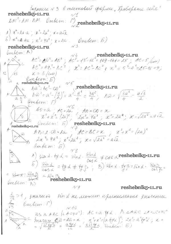 Готовая домашняя работа с ответами по Геометрии за 8 класс Мерзляк, Полонский, Якир Учебник Алгоритм успеха Вентана-граф 2015 ФГОС - Проверь себя №3