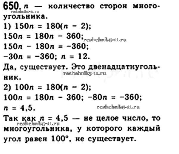 Готовая домашняя работа с ответами по Геометрии за 8 класс Мерзляк, Полонский, Якир Учебник Алгоритм успеха Вентана-граф 2015 ФГОС - § 19. Многоугольники 650