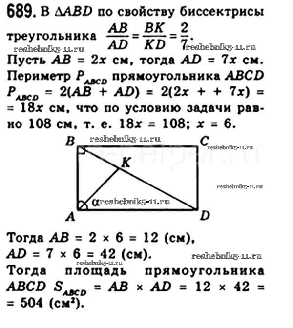 Готовая домашняя работа с ответами по Геометрии за 8 класс Мерзляк, Полонский, Якир Учебник Алгоритм успеха Вентана-граф 2015 ФГОС - § 20. Понятие площади многоугольника. Площадь прямоугольника 689