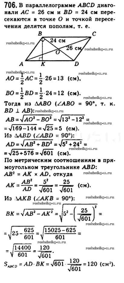 Готовая домашняя работа с ответами по Геометрии за 8 класс Мерзляк, Полонский, Якир Учебник Алгоритм успеха Вентана-граф 2015 ФГОС - § 21. Площадь параллелограмма 706