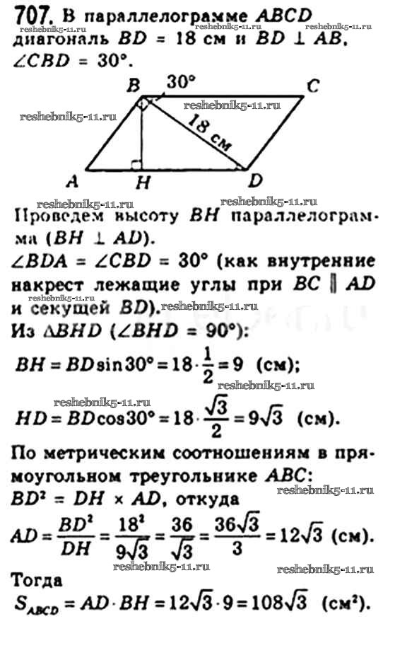 Готовая домашняя работа с ответами по Геометрии за 8 класс Мерзляк, Полонский, Якир Учебник Алгоритм успеха Вентана-граф 2015 ФГОС - § 21. Площадь параллелограмма 707