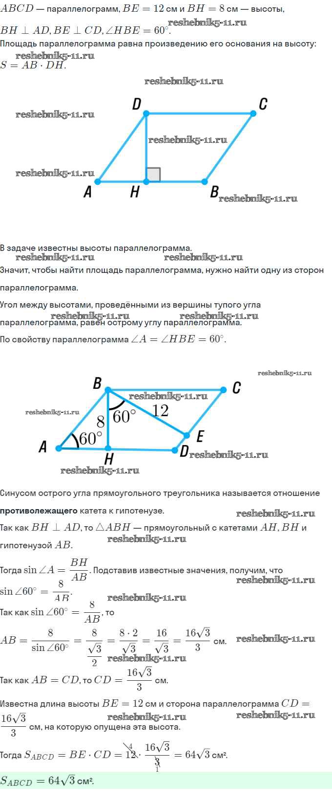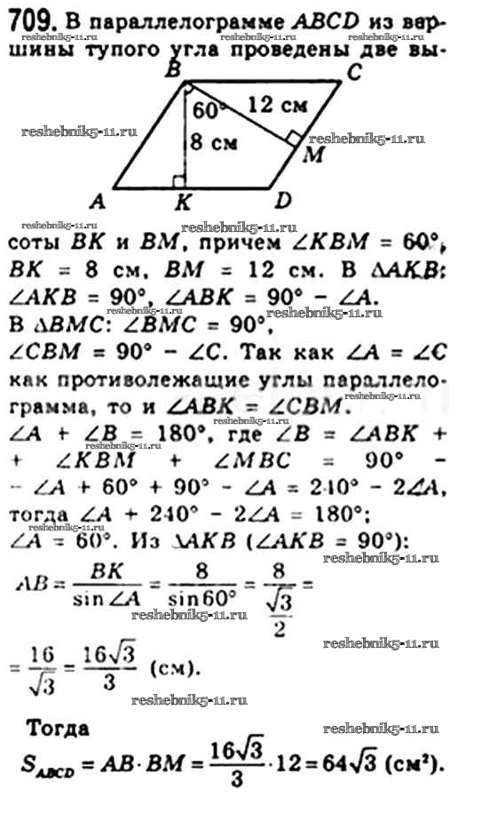 Готовая домашняя работа с ответами по Геометрии за 8 класс Мерзляк, Полонский, Якир Учебник Алгоритм успеха Вентана-граф 2015 ФГОС - § 21. Площадь параллелограмма 709
