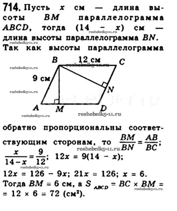Готовая домашняя работа с ответами по Геометрии за 8 класс Мерзляк, Полонский, Якир Учебник Алгоритм успеха Вентана-граф 2015 ФГОС - § 21. Площадь параллелограмма 714