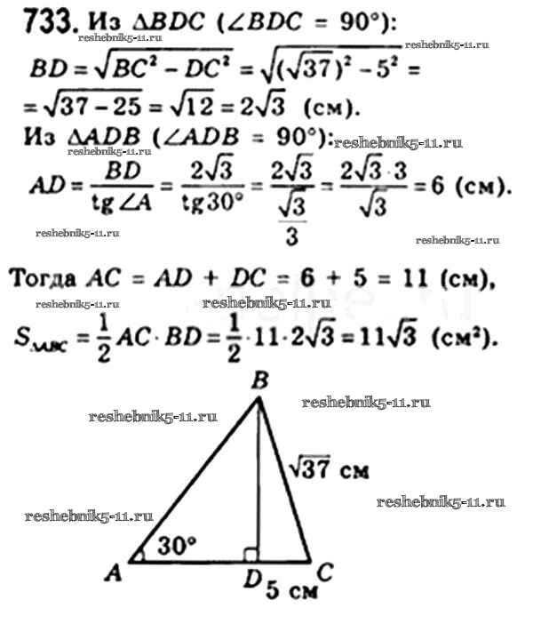 Готовая домашняя работа с ответами по Геометрии за 8 класс Мерзляк, Полонский, Якир Учебник Алгоритм успеха Вентана-граф 2015 ФГОС - § 22. Площадь треугольника 733