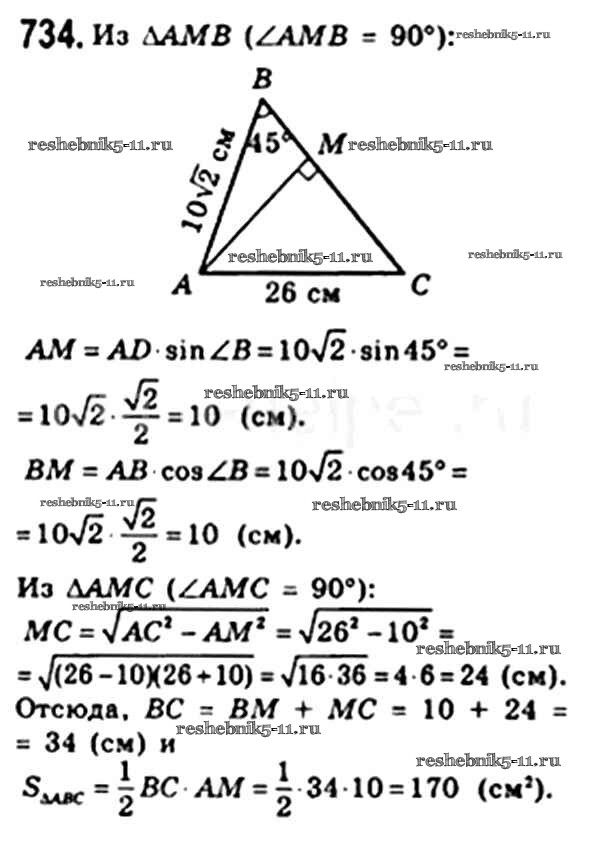 Готовая домашняя работа с ответами по Геометрии за 8 класс Мерзляк, Полонский, Якир Учебник Алгоритм успеха Вентана-граф 2015 ФГОС - § 22. Площадь треугольника 734
