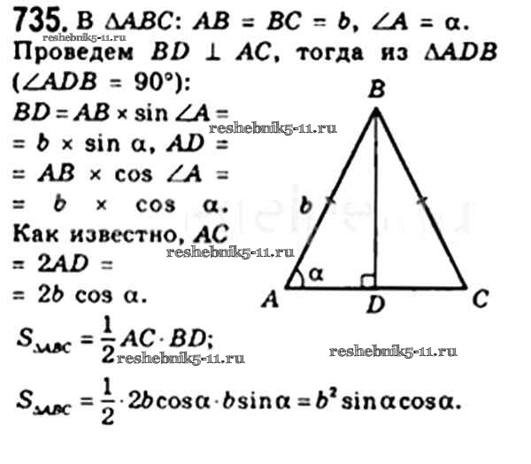 Готовая домашняя работа с ответами по Геометрии за 8 класс Мерзляк, Полонский, Якир Учебник Алгоритм успеха Вентана-граф 2015 ФГОС - § 22. Площадь треугольника 735