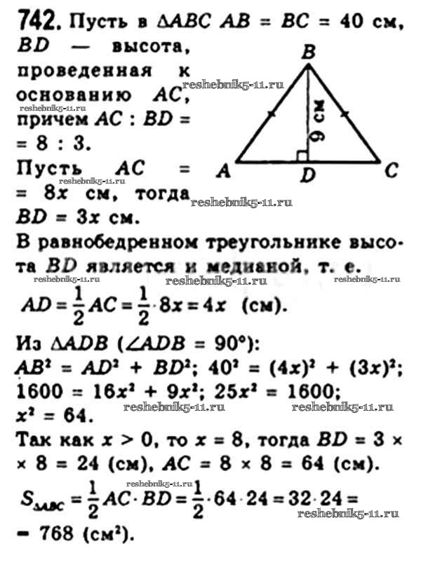 Готовая домашняя работа с ответами по Геометрии за 8 класс Мерзляк, Полонский, Якир Учебник Алгоритм успеха Вентана-граф 2015 ФГОС - § 22. Площадь треугольника 742
