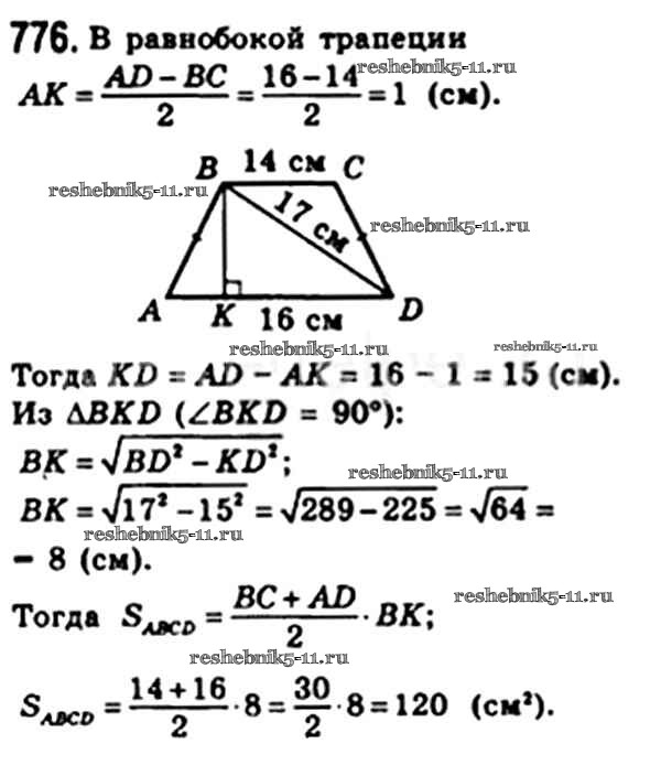 Готовая домашняя работа с ответами по Геометрии за 8 класс Мерзляк, Полонский, Якир Учебник Алгоритм успеха Вентана-граф 2015 ФГОС - § 23. Площадь трапеции 776