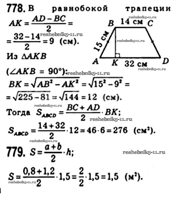Готовая домашняя работа с ответами по Геометрии за 8 класс Мерзляк, Полонский, Якир Учебник Алгоритм успеха Вентана-граф 2015 ФГОС - § 23. Площадь трапеции 778