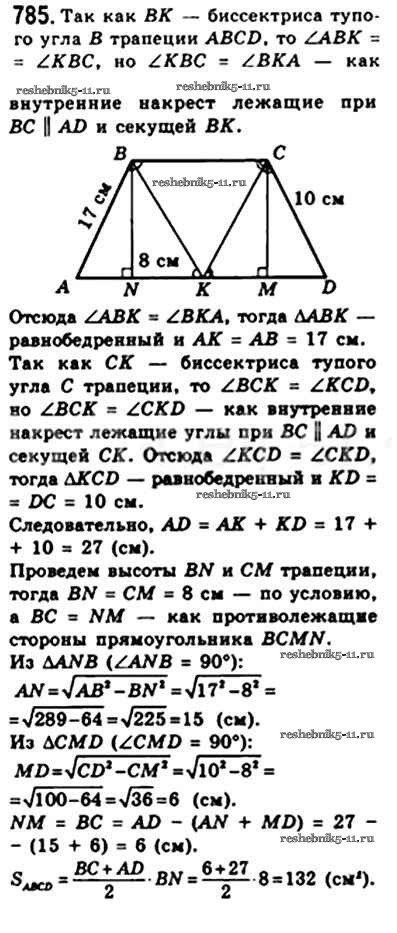 Готовая домашняя работа с ответами по Геометрии за 8 класс Мерзляк, Полонский, Якир Учебник Алгоритм успеха Вентана-граф 2015 ФГОС - § 23. Площадь трапеции 785