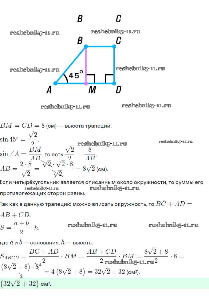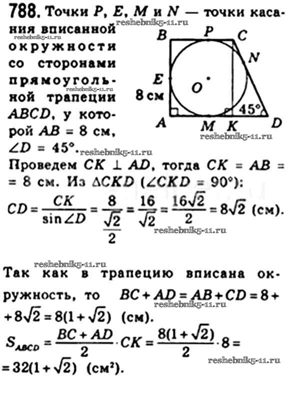 Готовая домашняя работа с ответами по Геометрии за 8 класс Мерзляк, Полонский, Якир Учебник Алгоритм успеха Вентана-граф 2015 ФГОС - § 23. Площадь трапеции 788