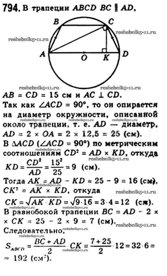 Готовая домашняя работа с ответами по Геометрии за 8 класс Мерзляк, Полонский, Якир Учебник Алгоритм успеха Вентана-граф 2015 ФГОС - § 23. Площадь трапеции 794