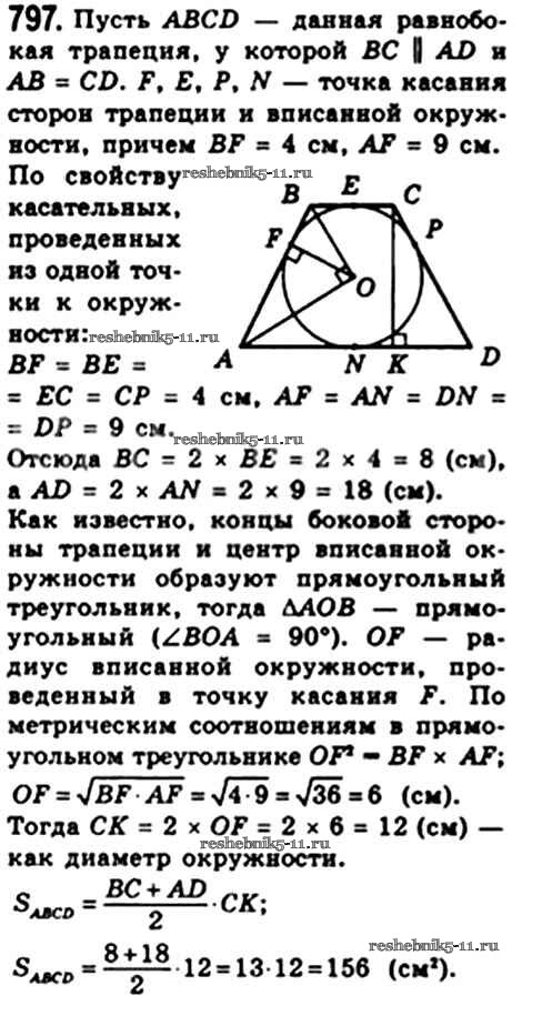 Готовая домашняя работа с ответами по Геометрии за 8 класс Мерзляк, Полонский, Якир Учебник Алгоритм успеха Вентана-граф 2015 ФГОС - § 23. Площадь трапеции 797