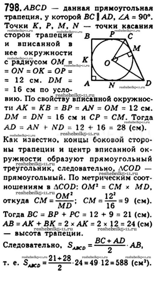Готовая домашняя работа с ответами по Геометрии за 8 класс Мерзляк, Полонский, Якир Учебник Алгоритм успеха Вентана-граф 2015 ФГОС - § 23. Площадь трапеции 798
