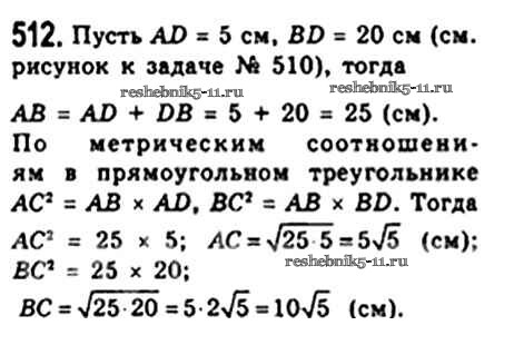 Готовая домашняя работа с ответами по Геометрии за 8 класс Мерзляк, Полонский, Якир Учебник Алгоритм успеха Вентана-граф 2015 ФГОС - § 15. Метрические соотношения в прямоугольном треугольнике 512