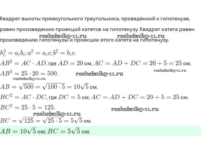 § 15. Метрические соотношения в прямоугольном треугольнике