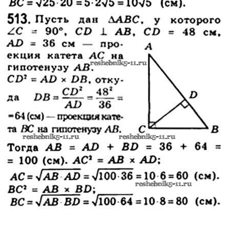 Готовая домашняя работа с ответами по Геометрии за 8 класс Мерзляк, Полонский, Якир Учебник Алгоритм успеха Вентана-граф 2015 ФГОС - § 15. Метрические соотношения в прямоугольном треугольнике 513
