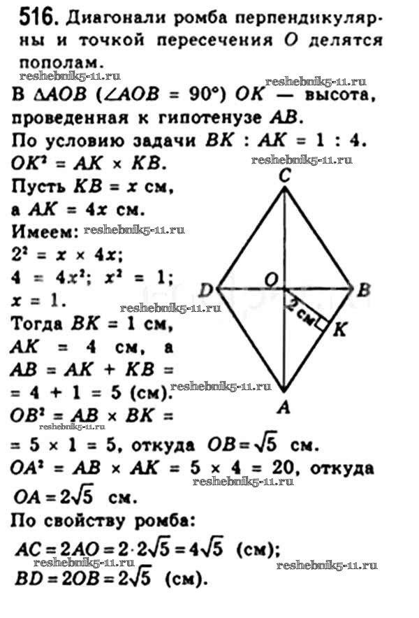 Готовая домашняя работа с ответами по Геометрии за 8 класс Мерзляк, Полонский, Якир Учебник Алгоритм успеха Вентана-граф 2015 ФГОС - § 15. Метрические соотношения в прямоугольном треугольнике 516