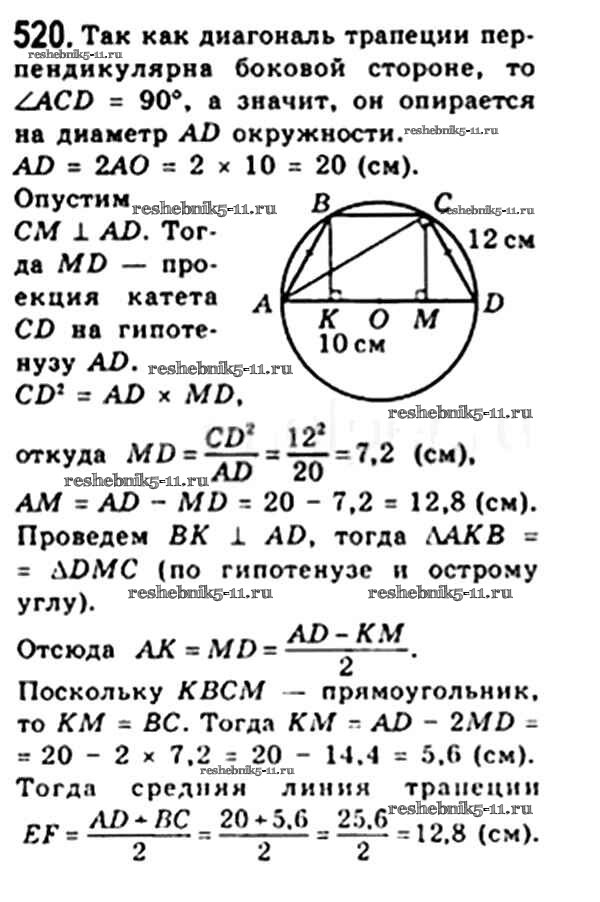 Готовая домашняя работа с ответами по Геометрии за 8 класс Мерзляк, Полонский, Якир Учебник Алгоритм успеха Вентана-граф 2015 ФГОС - § 15. Метрические соотношения в прямоугольном треугольнике 520