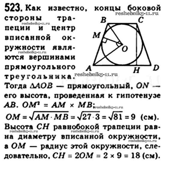 Готовая домашняя работа с ответами по Геометрии за 8 класс Мерзляк, Полонский, Якир Учебник Алгоритм успеха Вентана-граф 2015 ФГОС - § 15. Метрические соотношения в прямоугольном треугольнике 523