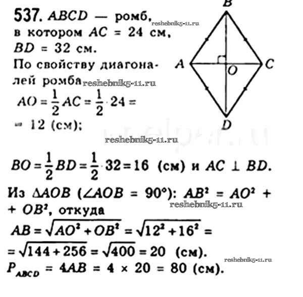 Готовая домашняя работа с ответами по Геометрии за 8 класс Мерзляк, Полонский, Якир Учебник Алгоритм успеха Вентана-граф 2015 ФГОС - § 16. Теорема Пифагора 537
