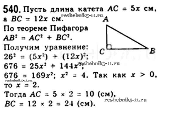 Готовая домашняя работа с ответами по Геометрии за 8 класс Мерзляк, Полонский, Якир Учебник Алгоритм успеха Вентана-граф 2015 ФГОС - § 16. Теорема Пифагора 540