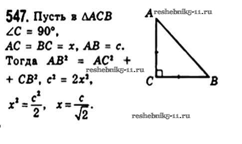 Готовая домашняя работа с ответами по Геометрии за 8 класс Мерзляк, Полонский, Якир Учебник Алгоритм успеха Вентана-граф 2015 ФГОС - § 16. Теорема Пифагора 547