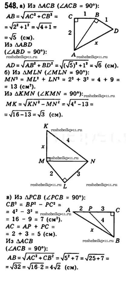 Готовая домашняя работа с ответами по Геометрии за 8 класс Мерзляк, Полонский, Якир Учебник Алгоритм успеха Вентана-граф 2015 ФГОС - § 16. Теорема Пифагора 548