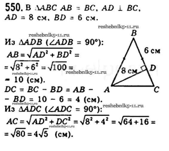 Готовая домашняя работа с ответами по Геометрии за 8 класс Мерзляк, Полонский, Якир Учебник Алгоритм успеха Вентана-граф 2015 ФГОС - § 16. Теорема Пифагора 550